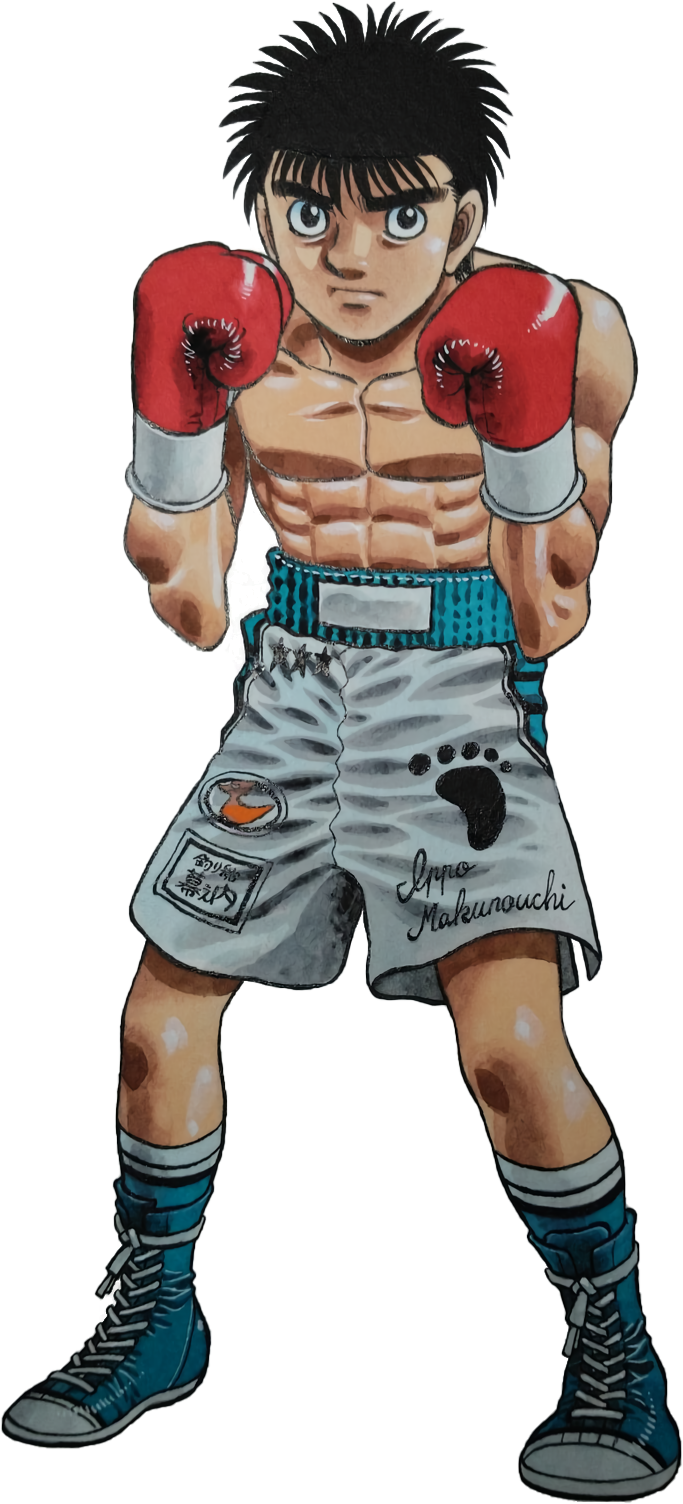 Ippo Makunouchi (幕之内一歩, Makunouchi Ippo) is the eponymous protagonist of Hajime no Ippo. He is a trainer, retired featherweight professional boxer from the Kamogawa gym, and a former reigning featherweight JBC champion.