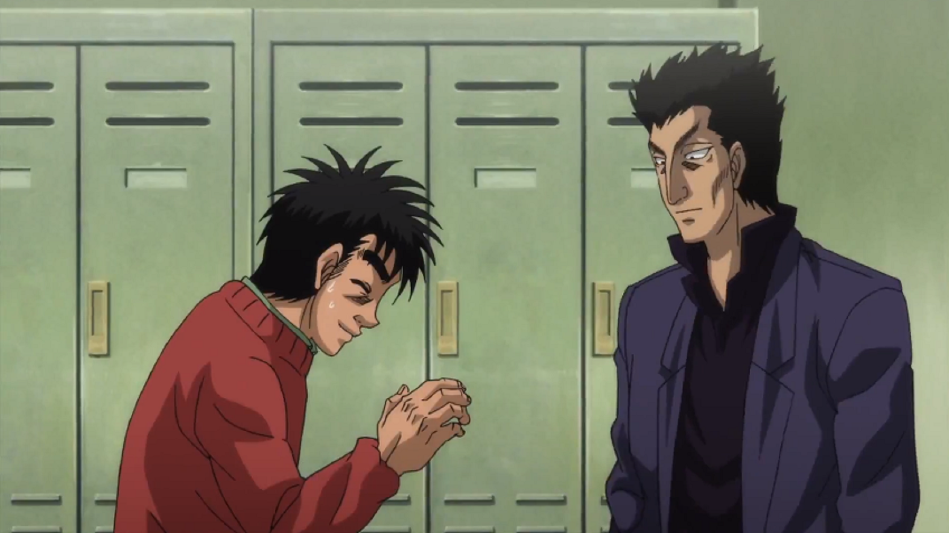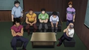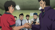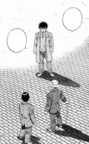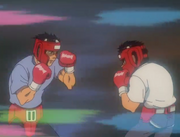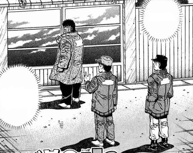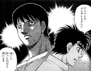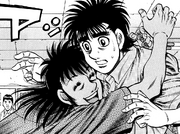 With Miyata's departure, Ippo lost a goal to fight for and no longer showed his characteristic enthusiasm. In an attempt to solve this problem, Kamogawa ordered him to follow Takamura's training routine, with hopes of him realising just how difficult a boxer's life really is. Kamogawa's attempts proved to be successful, as Ippo understood by watching Takamura going through his training schedule with such energy despite suffering the effects of his weight management.