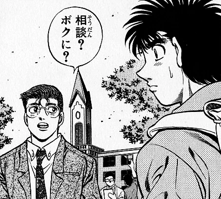 Ippo has been known since the start of the series to be intellectually capable, with his grades being remarkable to the point that he could be capable of entering any college he wanted in the nation, according to his teacher.[81] Ippo's bookish nature was noticed by Takamura, who showed no concern for his performance in the pro exam’s written test. [82]