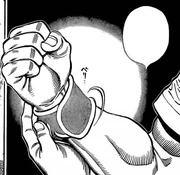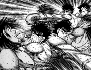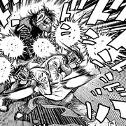 Perfectly complementing Ippo's high-volume boxing style utilising quick combinations of compact punches in succession, his hand speed is remarkable among the division. Before even becoming a boxer, during his first spar against Miyata, Ippo's hand speed was praised by his opponent, Miyata Senior, and the onlookers at the gym when he showed his jabs.[75] During his retirement, Ippo's punches were fast enough to be competent at the world level, with Ippo himself claiming to be able to emulate the hand speed of an active world ranker after removing his wrist weights.[76]