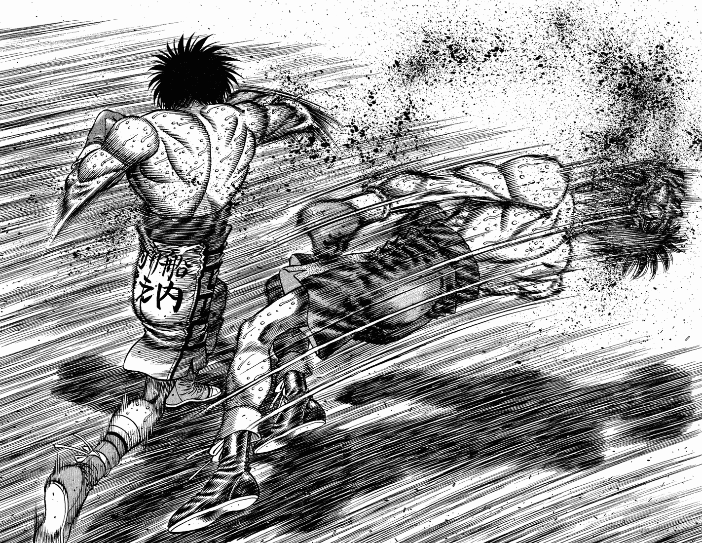 Although severely lacking in terms of footwork, Ippo's dash speed is one of his most proven and trustworthy weapons, used to close the distance on bigger opponents and force an in-fight. Since it comprises a key aspect of Ippo's boxing, the sharpness and speed of his dash is constantly being refined, with it receiving a significant improvement since Ippo began to use ankle weights on a daily basis. Ippo's dash speed was described by Miyata as being world class.[73] Despite being retired, his speed increased further, being able to, while wearing weight straps, run alongside the active three weight class world champion Takamura, who went full speed. [74]