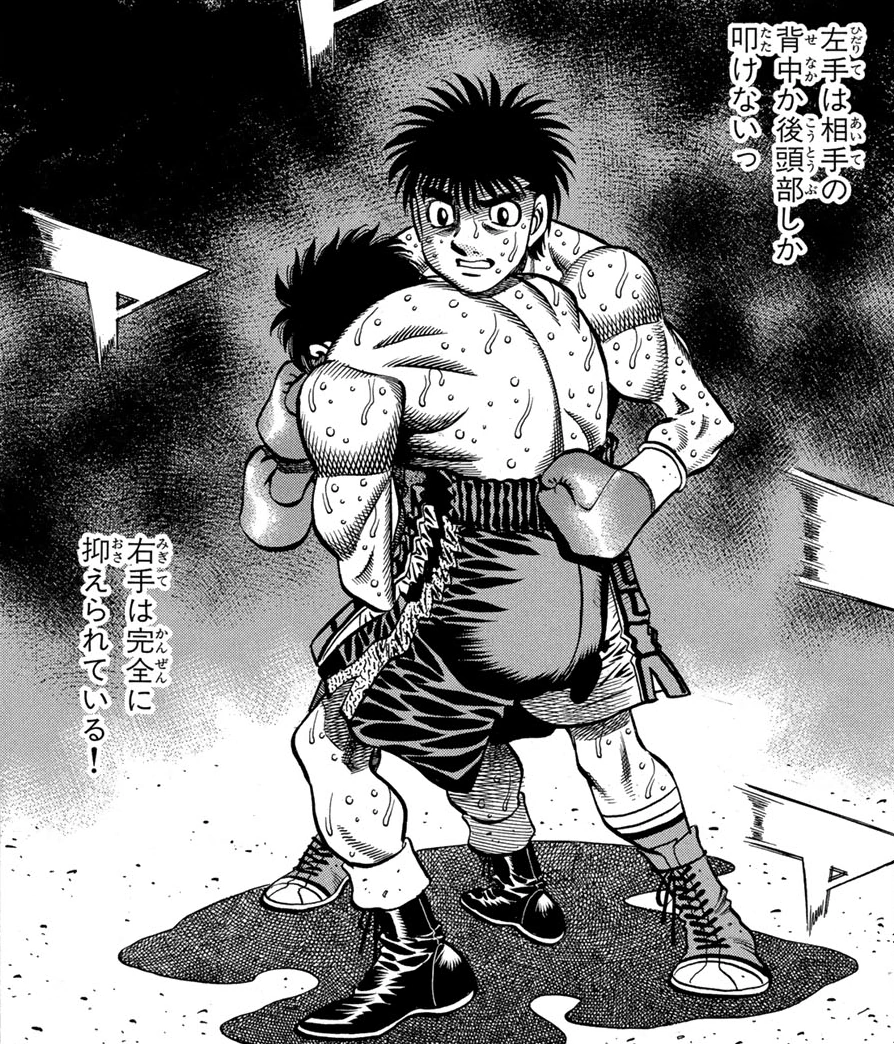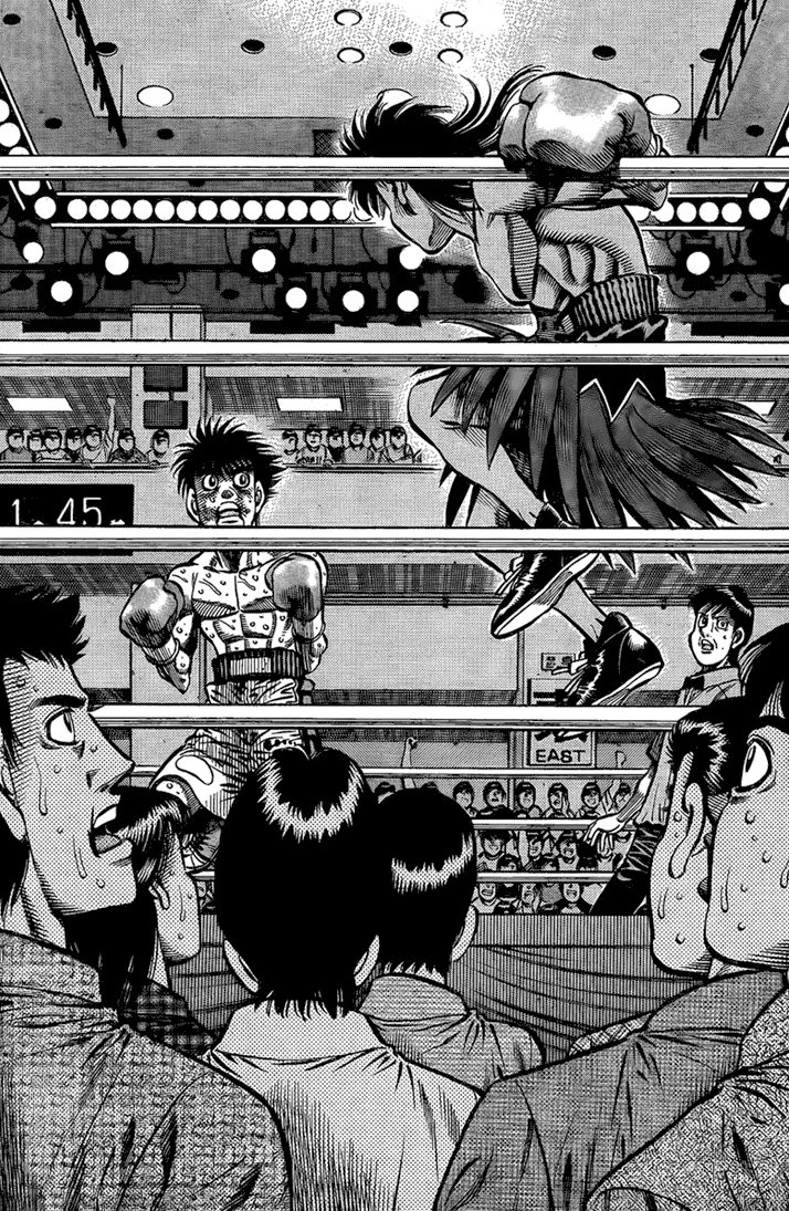 Inside of the ring, he’s proved proficient at adapting to adverse situations when he’s able to keep calm and focused. For instance, during the East Japan Rookie King Tournament Finals, Ippo demonstrated the ability to rapidly adjust to Mashiba's Flicker Jabs and consistently get past them by the second round, even though he didn’t have any previous training or experience dealing with twisting lefts─on another occasion, by the end of his fifth title defence, he was able to naturally react to Ryūhei Sawamura’s fouls without slowing down, who used illegal tactics Ippo had never come across prior to the match. [85][86] Ippo has even managed to improvise and perform techniques he had never practised before, such as the southpaw stance and the Heartbreak Shot.[87][88]
