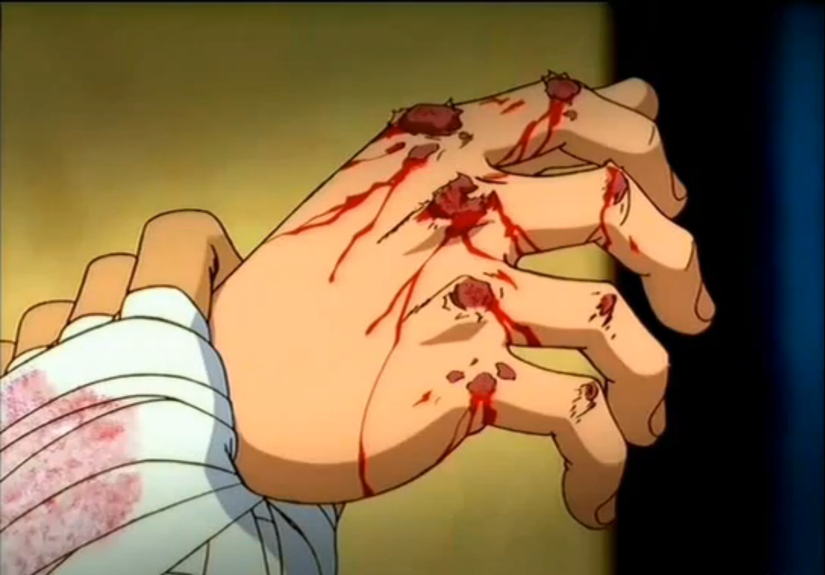 Ippo's damaged fist after throwing his first punch on a sandbag.