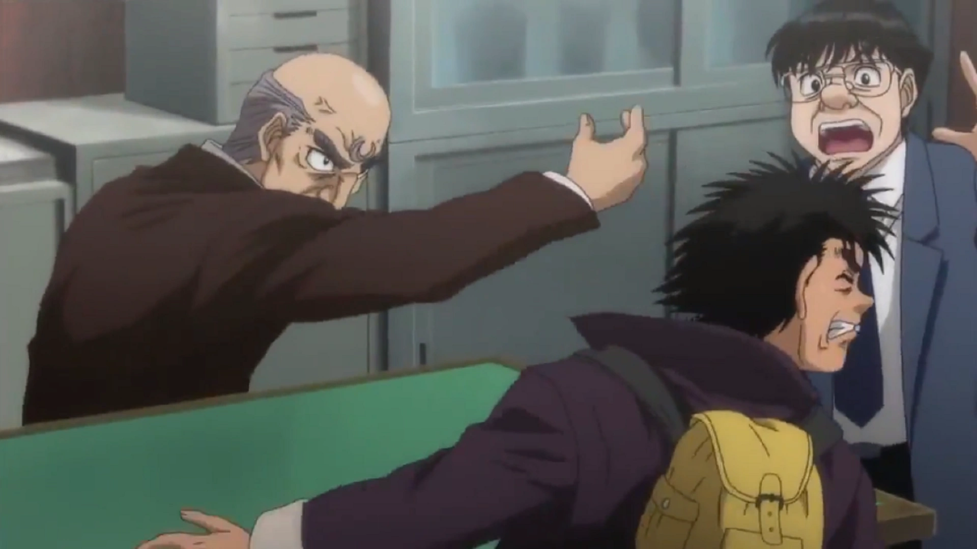 Kamogawa devising Ippo's style: "Technique is nothing against strength!!"